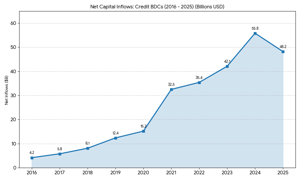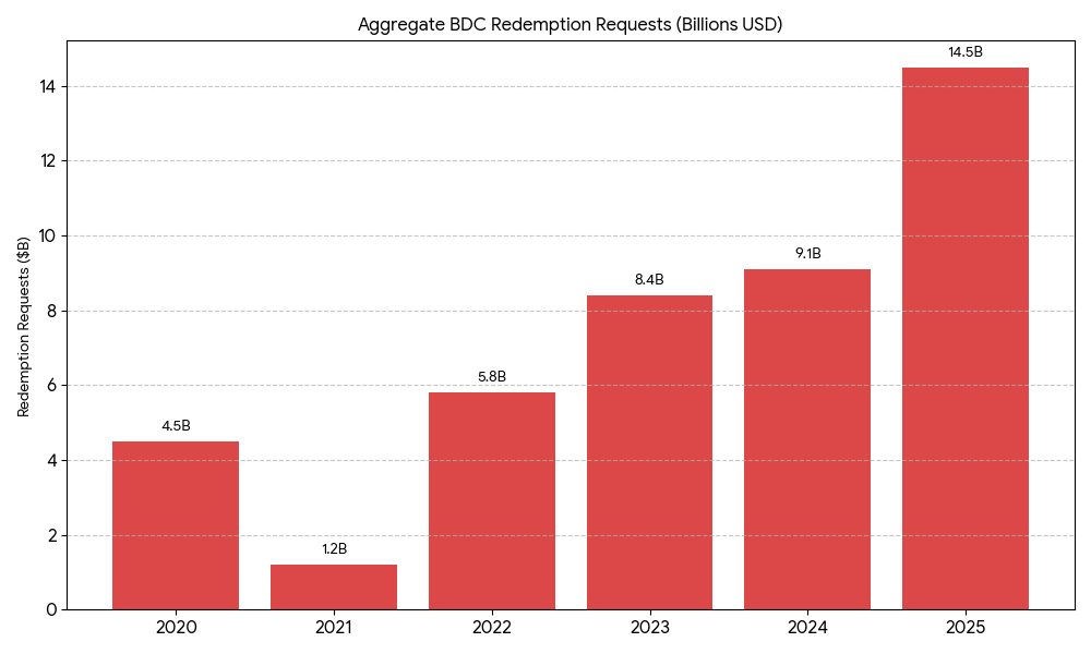 Current industry stress – The stress in the private credit ecosystem became apparent when a proposed merger between Blue Owl OBDC II private fund and publicly traded OBDC was rejected by shareholders of OBDC II.