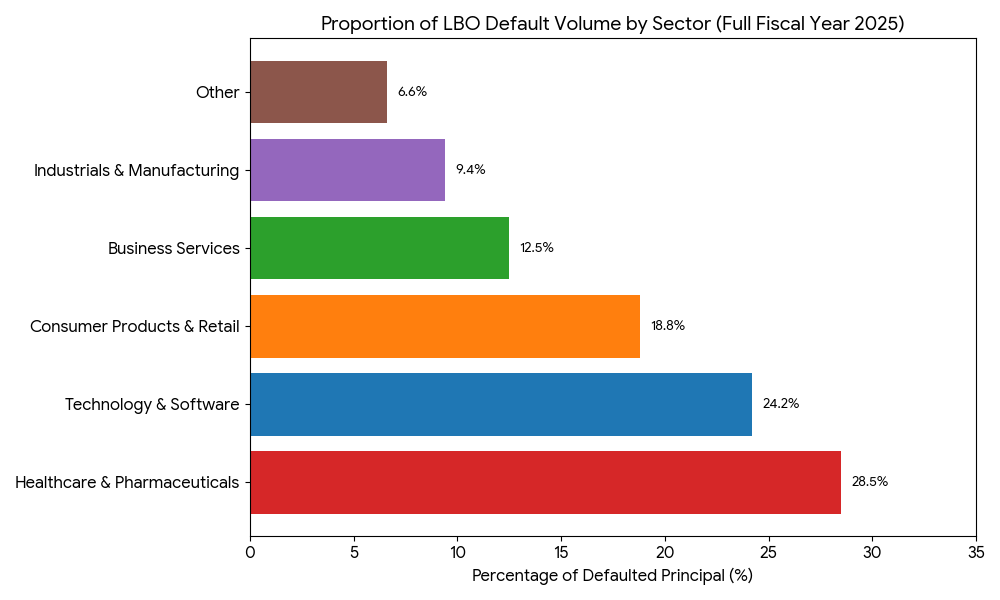 The LBO defaults were concentrated in 3 sectors: Healthcare, Software and Consumer Products.